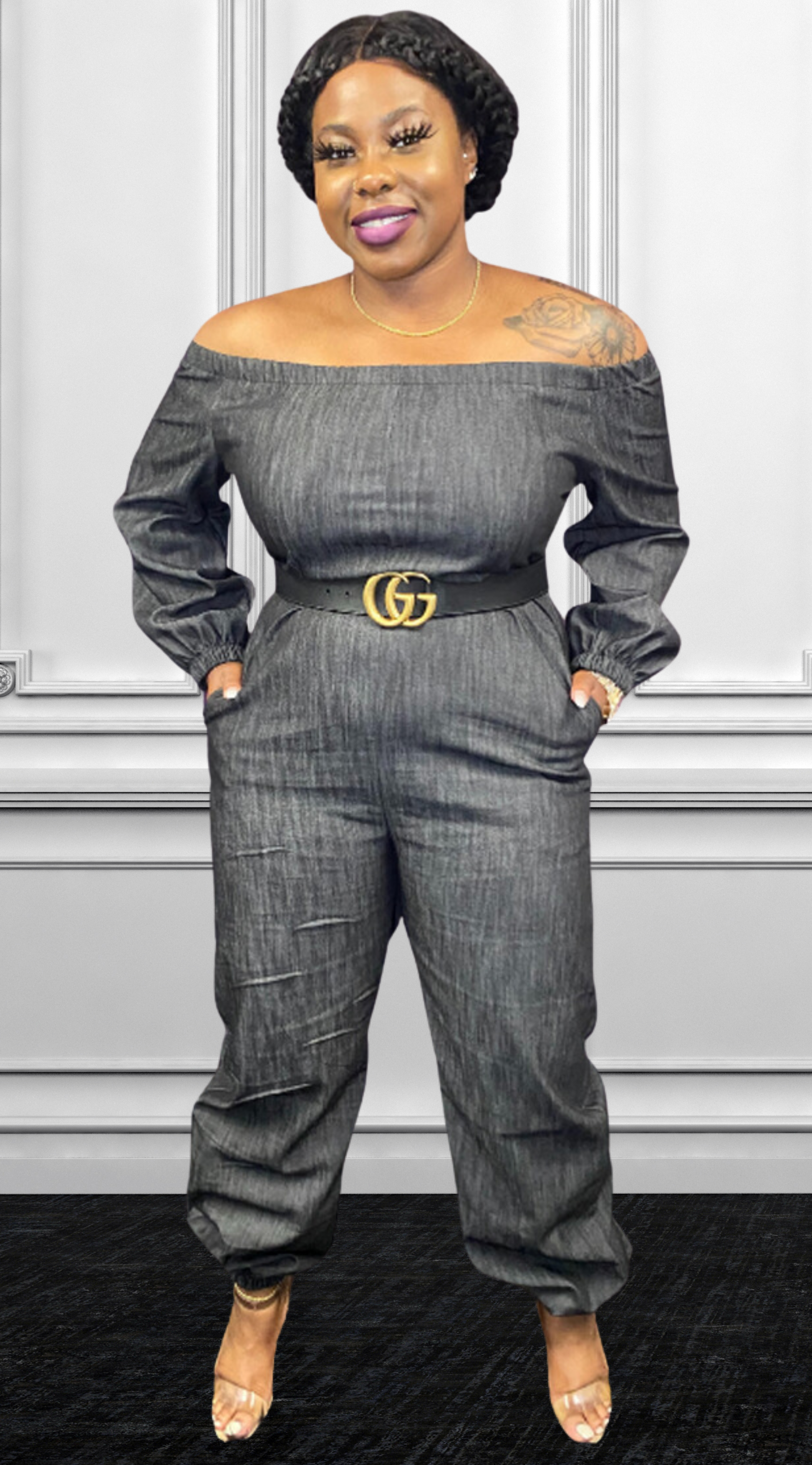Comfort meets style with the "Off the shoulder" jumpsuit. Wear it by itself, or dress it up with a blazer, a belt, cute shoes, and your favorite necklace, and you are good to go!