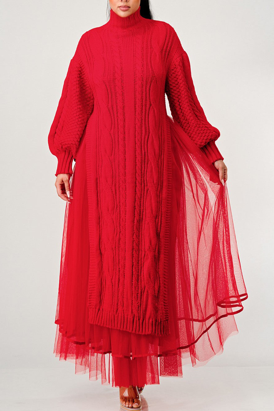 Sweater & Tulle Skirt Set is your ultimate style statement! Crafted from high-quality fabric, the knit maxi sweater whimsy tulle skirt, is a perfect blend of cozy and chic.